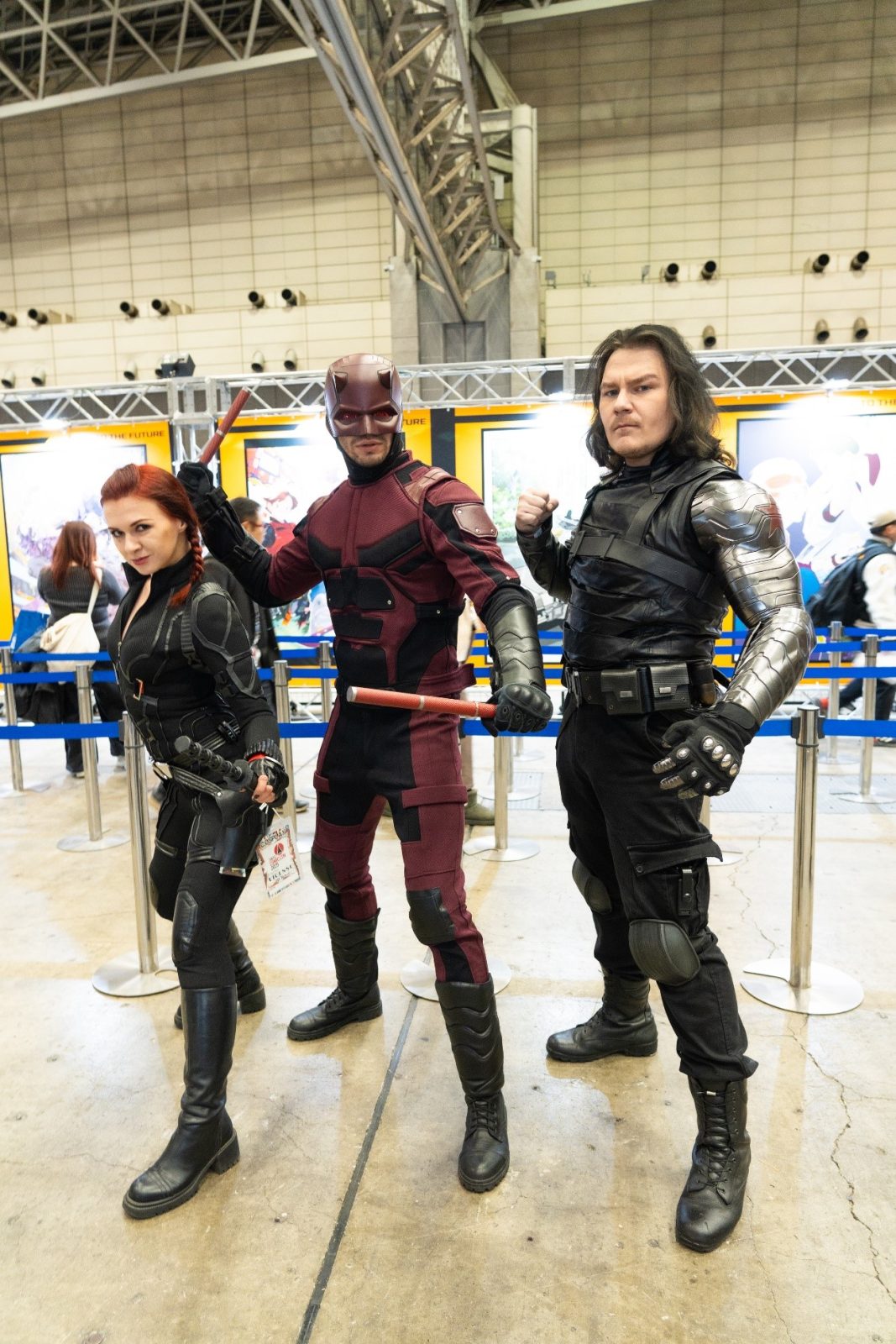様々な作品に登場した衣装や小道具、車などの展示、グッズの販売が行われ賑わう中、恒例のコスプレイヤーたちが全国、世界から大集結。会場を盛り上げた。
