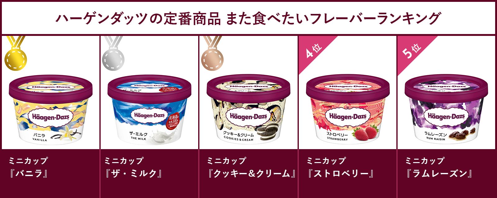 ※ミニカップ定番商品:通年で販売しているミニカップ『バニラ』・『ストロベリー』・『グリーンティー』・『クッキー&クリーム』・『マカデミアナッツ』・『ラムレーズン』・『ザ・ミルク』・ 『ガナッシュショコラ』の8商品。