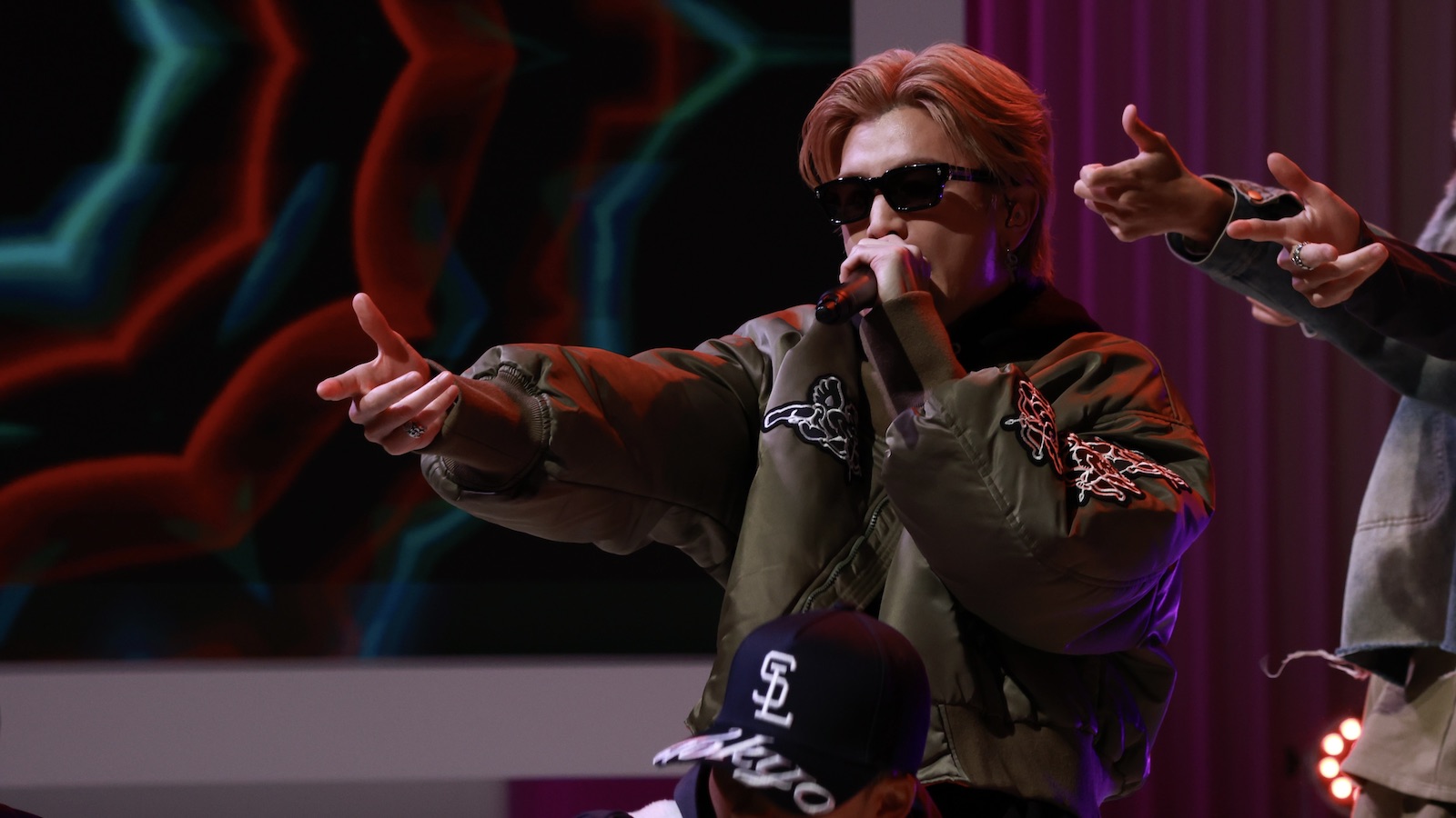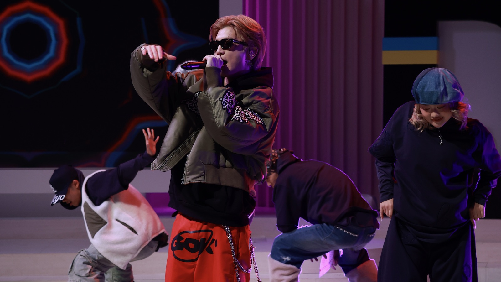 続いて12月3日(水)にリリースした最新アルバム『SPACE COWBOY』から新曲『CROWN』を生披露。岩田は「ヒップホップ要素の強い、自分自身の生き様を歌ったような楽曲になっています。ダンスは世界的にも活躍しているRIEHATAがプロデュースをしてくれました」と紹介。