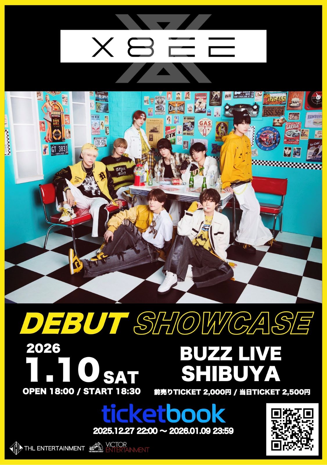 12月24日、”X8EE(バイビー)”が渋谷ストリームホールにて行われた株式会社THL主催の事務所LIVE「Sohot!!!」にてお披露目された。