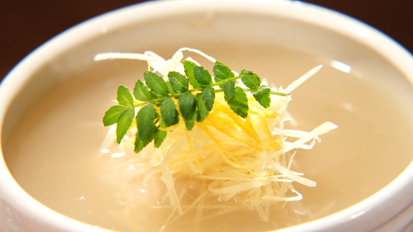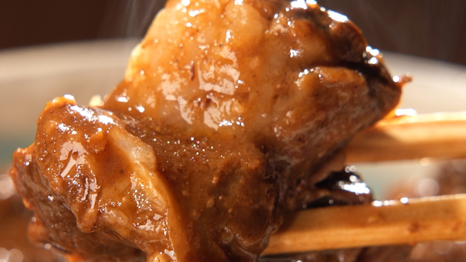 続いての料理は、テレビ初公開。常連客にしか出さないという、冬限定メニューの『テールの蕪(かぶら)蒸し』。一般的な蕪蒸しは、すりおろしたカブを白身魚にのせて蒸し、餡(あん)をかける京料理として知られているが、『安参』では肉割烹ならではの牛テールを使用している。粘り気の強いつくねいもと、濃厚な味わいの大和いもを合わせた特製蕪をテールの上にのせ、10分ほど蒸す。仕上げに、牛から丁寧に取ったテールスープの餡をとろりとかければ、常連が何度も注文するという絶品、テールの蕪蒸しの完成。