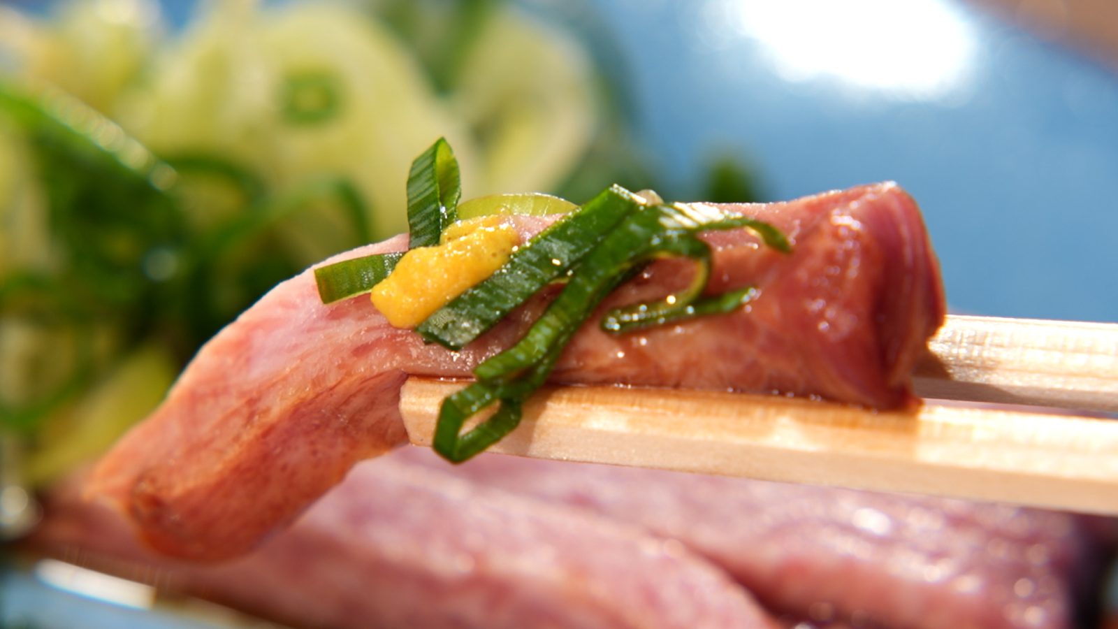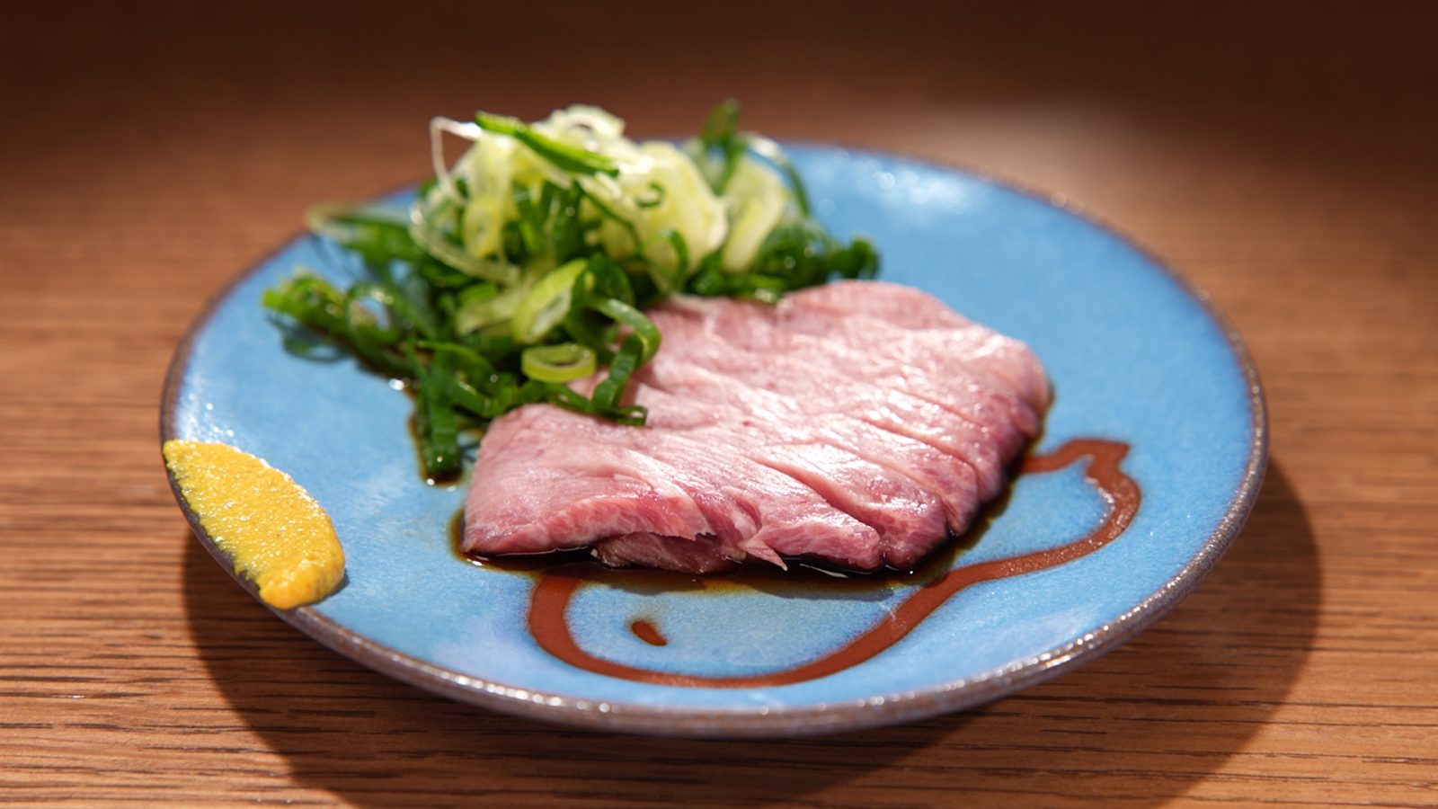 そんな店で最初に出されたのは、牛タンの刺し身『ツンゲ』。ドイツ語で“タン”を意味する言葉だという。タンの刺し身は初めてだという孝太郎は、「生の方がうまみとか甘みがずーっと余韻が長いですね。ちょっと甘いおしょうゆも合いますね」と感想を述べた。すると店主は「ひいじいちゃん(初代)が作った秘伝の一子相伝で」と、代々受け継がれてきたタレであることを明かした。