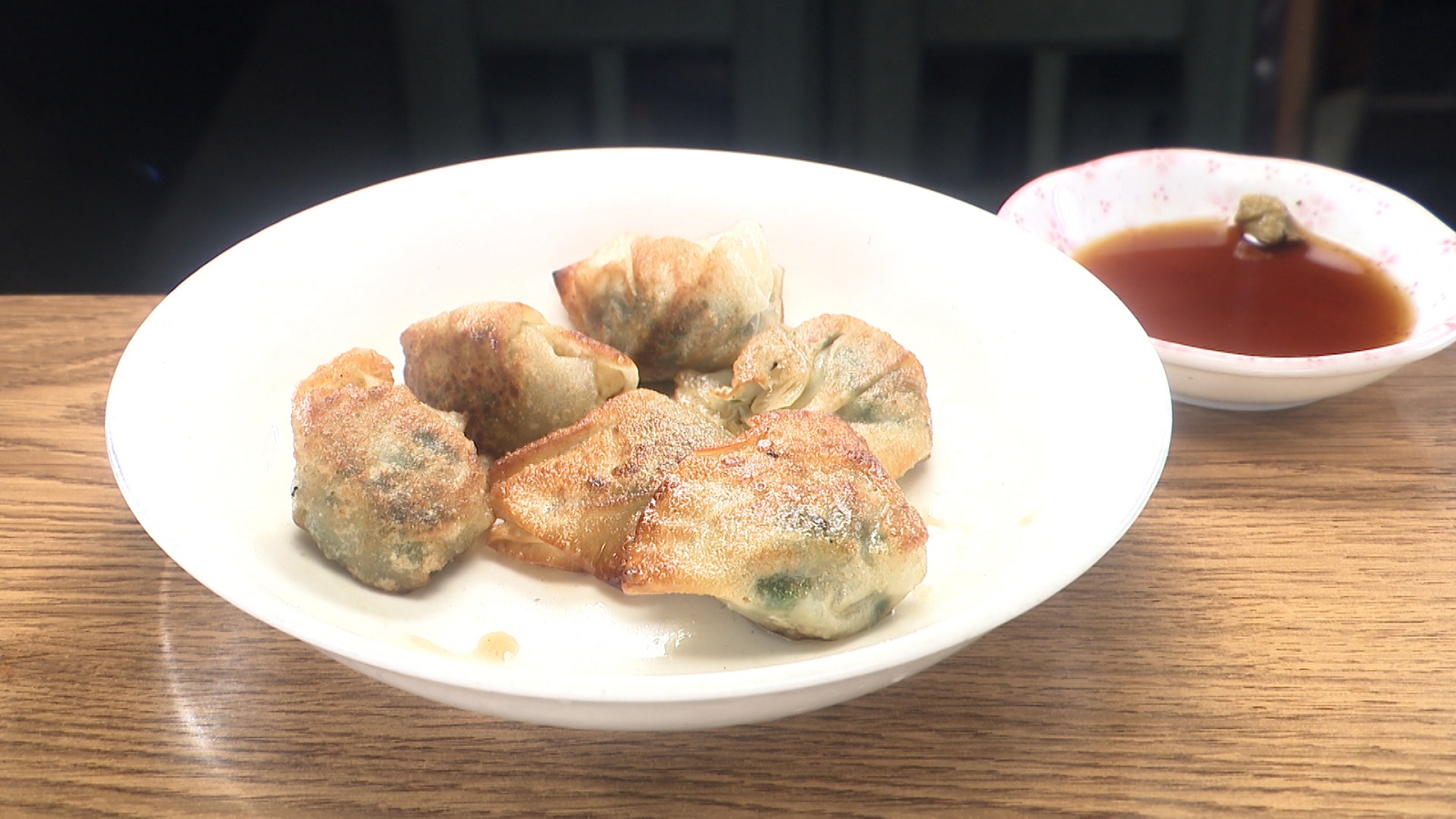 屋台通の客をうならせているのが『手作りギョウザ』(550円)。フライパンから上がる炎が最も激しい料理でもある。あんを皮で包むのは注文が入ってから。あんの野菜はニラのみ。油を入れたフライパンにギョウザを投入したら、適宜水を入れて、フタをかぶせたり、外したりを、素早く何度も繰り返す。その都度大きな炎を吹き上げるフライパン。そして燃え盛るままギョーザを皿に盛り付け。焼き時間はわずか34秒。