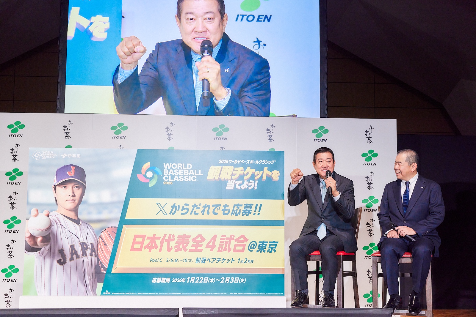 大谷翔平選手が愛飲する、株式会社伊藤園の無糖緑茶飲料ブランド『お~いお茶』が「World Baseball Classic」(3/5〜17)のオフィシャルグローバルパートナーに決定。『お~いお茶』ブランドが大会全体のオフィシャルグリーンティーに採用された。これを受け、本日1月22日(木)に開催された『お~いお茶×World Baseball ClassicTM 新PROJECT発表会(以下、本イベント)』では、World Baseball Classicで大会史上初の2連覇に導いた元日本代表監督の原辰徳氏がスペシャルゲストとして登壇。今大会の見どころや期待について語ったほか、大会に向けた大谷翔平選手のコメントムービーが初披露された。