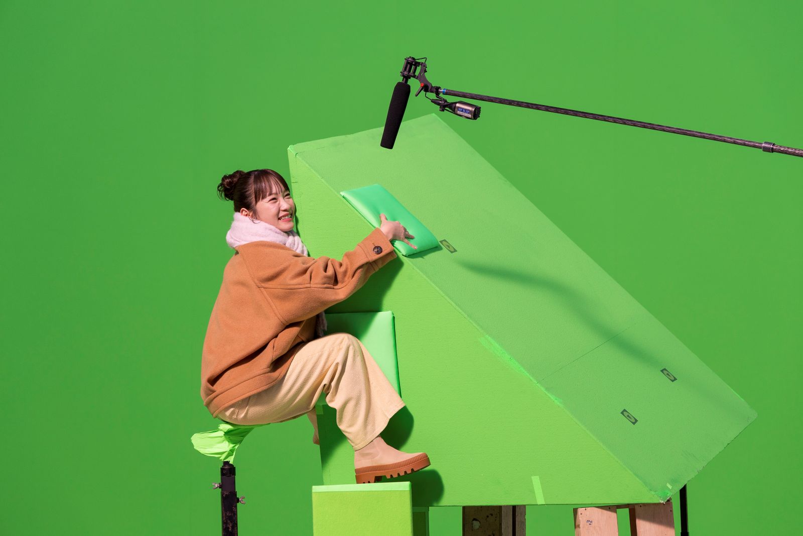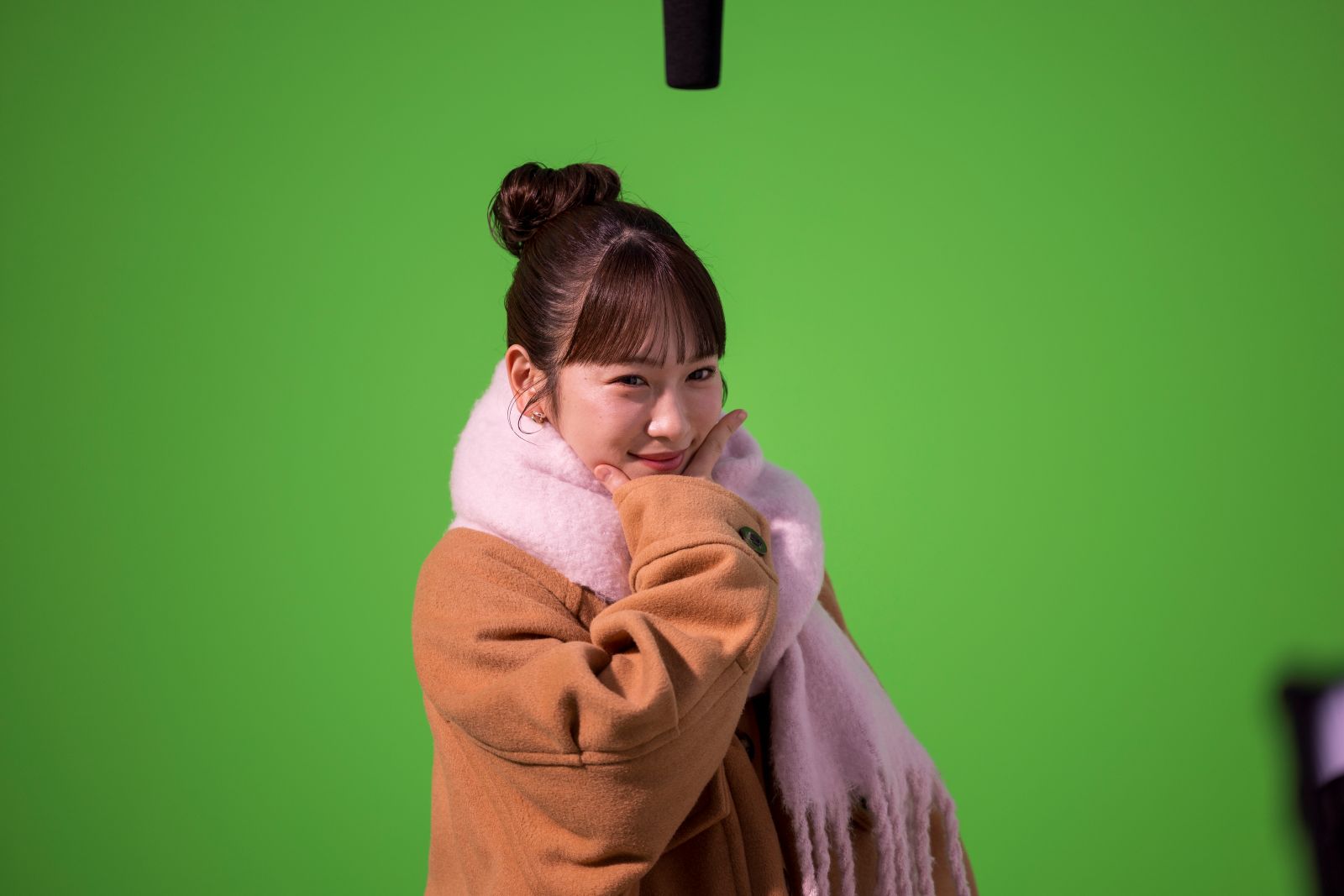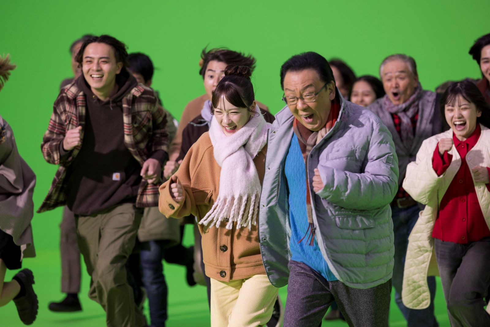撮影は、終始和やかに進行した。町を疾走するシーンの撮影後は、撮影された映像を見ながら松山・王林・川栄が談笑する場面も。松山の「川栄さんと(走る)スピード変わってない(笑)」という言葉に、王林も「めっちゃ走ってる感じ出てるのに!」と同意し、川栄は大爆笑。また、王林が「すごいな、顔の位置ずっとずれない、松山さん」と言うと、松山は「陸上部なんで」とドヤ顔し、「やっぱ違うなー、基本ができてるから」と感心する王林だった。