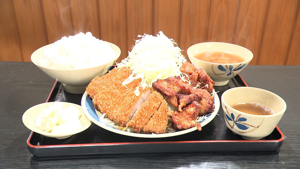 「とんかつは県内で一番おいしい」と常連客。「日本中どこ探しても、ここを超えるところはない」と言い切る客も。「とんかつ自体が甘い。食べてみるとわかる。脂が甘くて」とのこと。とんかつのバリエーションには、バター入りのチーズソースがかかった『チーズとんかつ定食』(1,450円)や、唐揚げが5個付いた『とんかつ唐揚げ定食』(1,450円)なども。そしてこの唐揚げも大人気で、「世界一の唐揚げと思ってる。依存性ある」と常連客。唐揚げ15個だけの『ジャンボ唐揚げ定食』(1,450円)も人気だ。