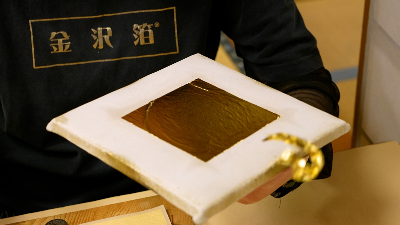 この道40年以上という山岸さん。そんな神が作る金箔は、栃木県・日光東照宮の国宝『陽明門』をはじめ、数々の修復に使われているという。そもそも金箔は、地金を 1 万分の1ミリ の薄さまで伸ばしたもの。金沢で金箔が初めて作られたのは、文禄2 年(1593 年)、加賀藩主・前田利家が、金箔の製造を命じたことが始まりといわれている。その技が脈々と受け継がれ、今では国内生産シェア100 %、日本の金箔文化を支え続けている。