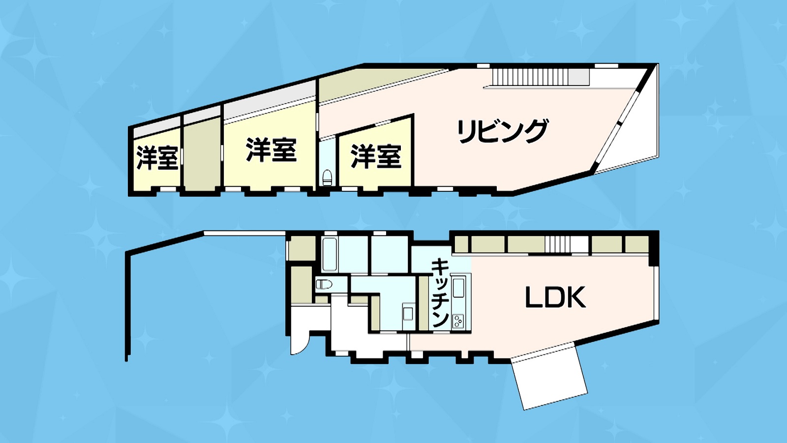 この家の間取りは2階建ての3LLDKSで、広さは236平米。1階は水回りと約29帖(じょう)のLDK、2階にはリビングと家族それぞれの部屋がある。