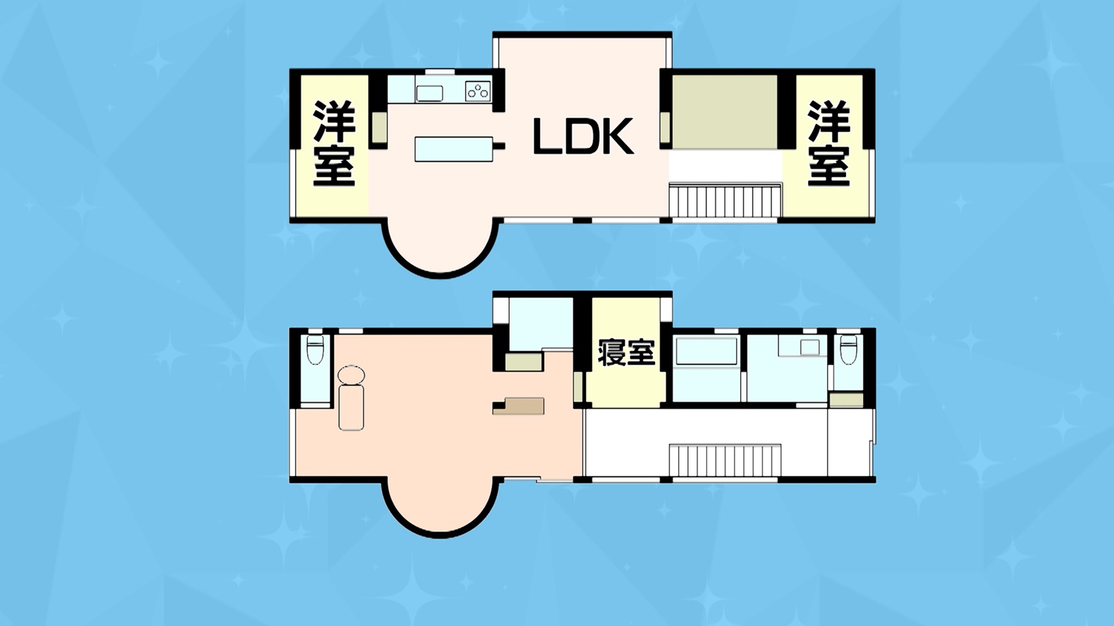 この家の間取りは2階建ての3LDKで、広さは約116平米。妻・沙織さんの夢を叶えたという空間は寝室の隣にあり、間取り図には丸と長方形のマークが描かれている。また、壁の一部は半円状になっている。