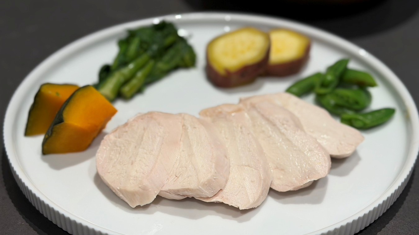 さらに、話題は“西川が普段食べている食事”の話になり、土鍋で低温調理した鶏胸肉と蒸し野菜の写真を紹介。西川は「我々は、鶏胸肉をどうおいしく食べるかの戦いなんです。フリーザーバッグに胸肉を入れて、空気をしっかり抜く。土鍋で水から炊いて、沸騰したら火を止める。そうするとゆっくり熱が逃げてドリップが残らない」。