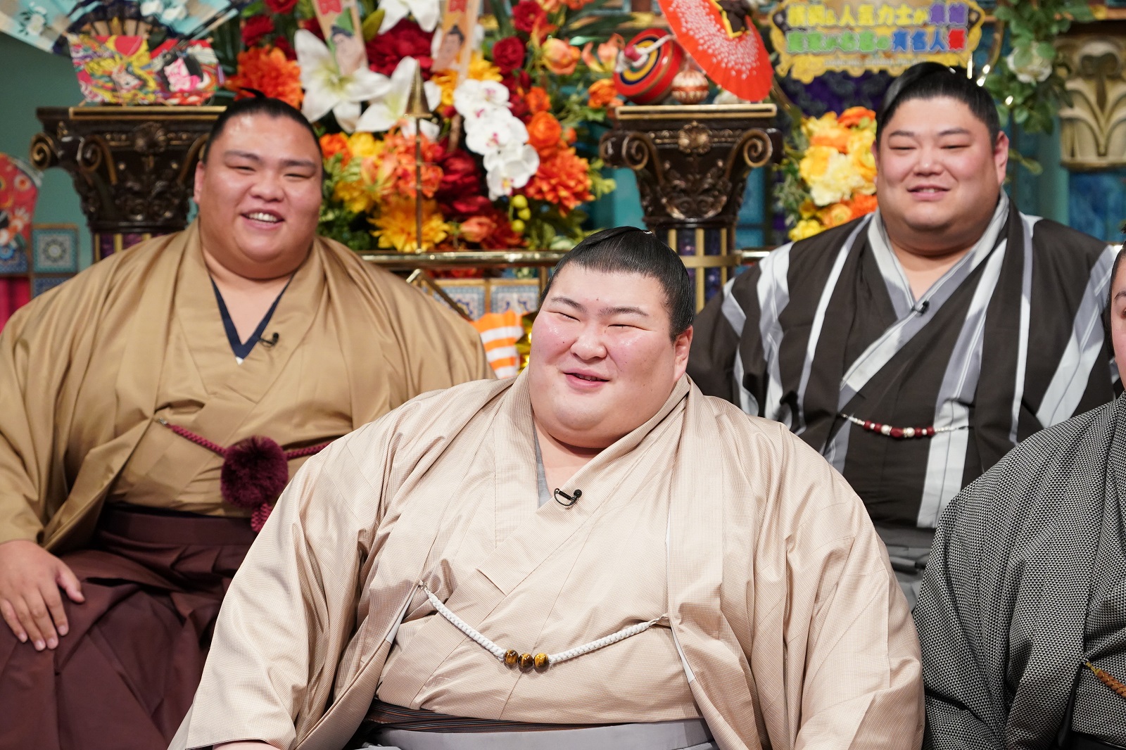 この日のスタジオは『人気力士のお悩み告白』をテーマに、9人の現役力士と行司が集結。番組冒頭で明石家さんまが「うわっ、スタジオせまっ!」と思わず大笑いするほどの迫力。そんな中、話題は「やせられない」「太れない」など体重の話に。