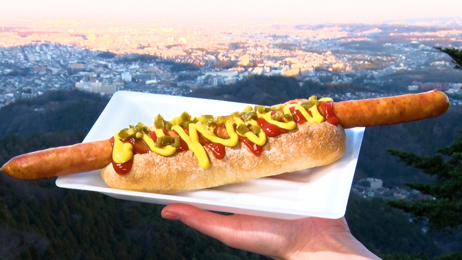最後に竹田さんがおすすめするのが 『ビアマウントのあったかグルメ天狗(てんぐ)ドック』(980円)。天狗の鼻をイメージした、長さ30cmの粗びきソーセージ を使用しているのが最大の特徴。パンはソーセージの脂に負けないよう、小麦の旨みがしっかり感じられる特注品で、ここでしか食べられない一品だ。竹田さんは「孝太郎さんには、ぜひ現地に来てもらって天狗ドックを食べてほしいなと思います」とおすすめ。見た目のインパクトだけでなく、食べ応えも抜群だ。
