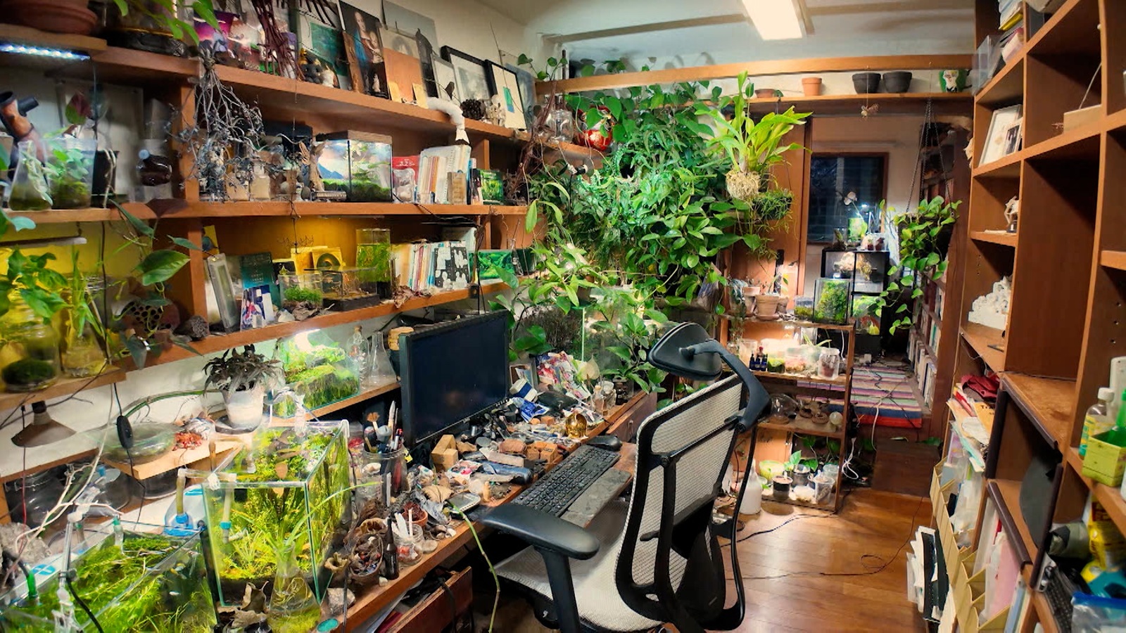部屋の隅には垂直庭園が作られており、伸びた蔓(つる)は数十mに及ぶそうだ。剪定(せんてい)しない理由について、市川先生は「擬人化している」と、装飾品としてではなく、植物を生き物として捉えていることを明かした。そして、「相手が人間でも、その人に無理強いできないんですよね。植物にも、気弱だからできない」と話し、美村は「だからみんな生き生きしてるんですね」と感動した様子だった。