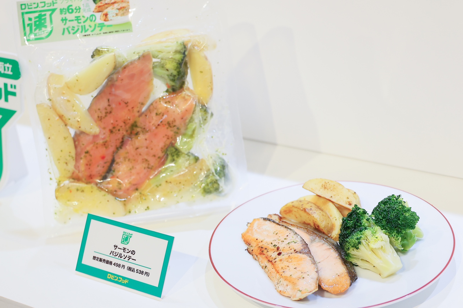 発表会では、太田・近藤夫妻が新PB商品を活用したワンプレート料理を披露。『ロビン・フッド』で販売される新PB商品(オリジナル商品)は、「安・得・早・楽」の4つのラインがあり、毎日を忙しく過ごす現代人にぴったりな商品が揃うという。近藤が作ったのは「10分で出来る!忙しい日でもうれしい!バランスプレート」。約10分という短い時間でできるタイパ抜群なプレートで、明太子スティック、わかめたっぷりスープ、チンできちゃう温野菜+玉ねぎドレッシング、焼き魚、杏仁豆腐を使った、“一皿でちゃんとしてる感”のあるワンプレート料理だ。