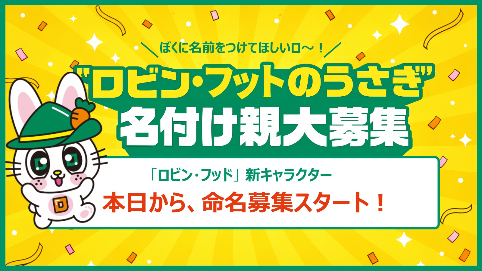 そんな二人は、『ロビン・フッド』新キャラクターであるうさぎの名前を一般募集するキャンペーン「ロビンのうさぎ 名付け親大募集」が3月3日(火)〜3月22日(日)に行われることを受け、それぞれが本気で名付け親を目指すべく考案したキャラクター名を発表。