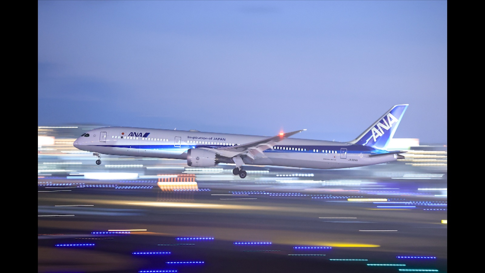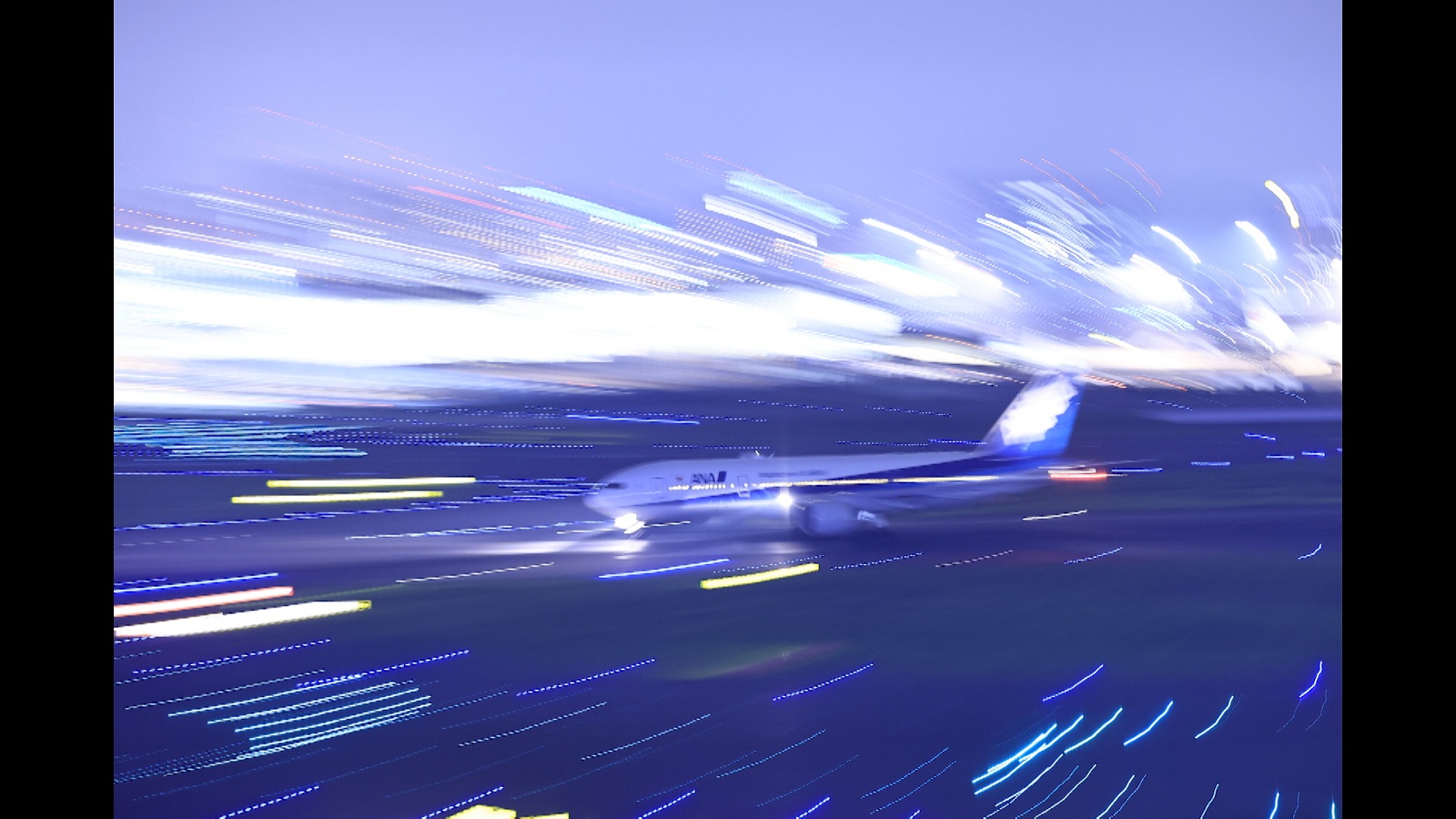午後6時10分日没。さらにここから夜の時間に狙える写真が、前回ルークさんが披露してくれた流し撮りでの撮影。シャッター速度を遅くして飛行機の動きを追い、飛行機と同じスピードでカメラを振ると背景が流れるという技。しかもただでさえぶれやすいこの技を三脚なしで行う。