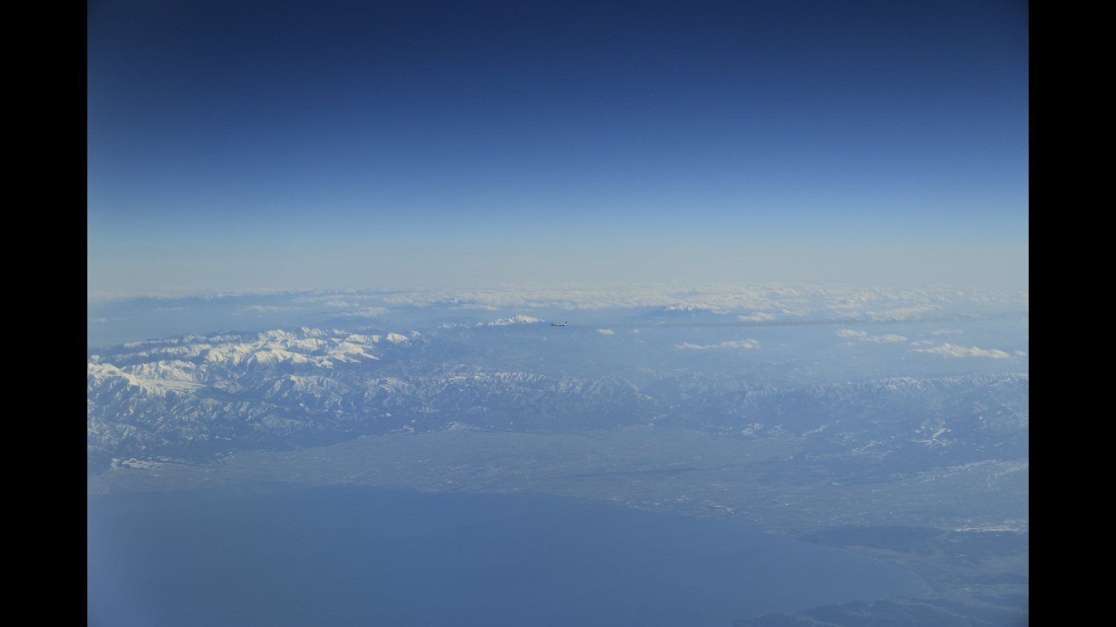飛行機が新潟県沖、佐渡島付近の上空を通過しているところで、なんと富士山の姿を発見。「こんな見える富士山、俺初めて見た」「今日はやばいね」とルークさんは興奮気味。新潟県越しに約300km離れた富士山が見えるという、初めての経験だったそう。