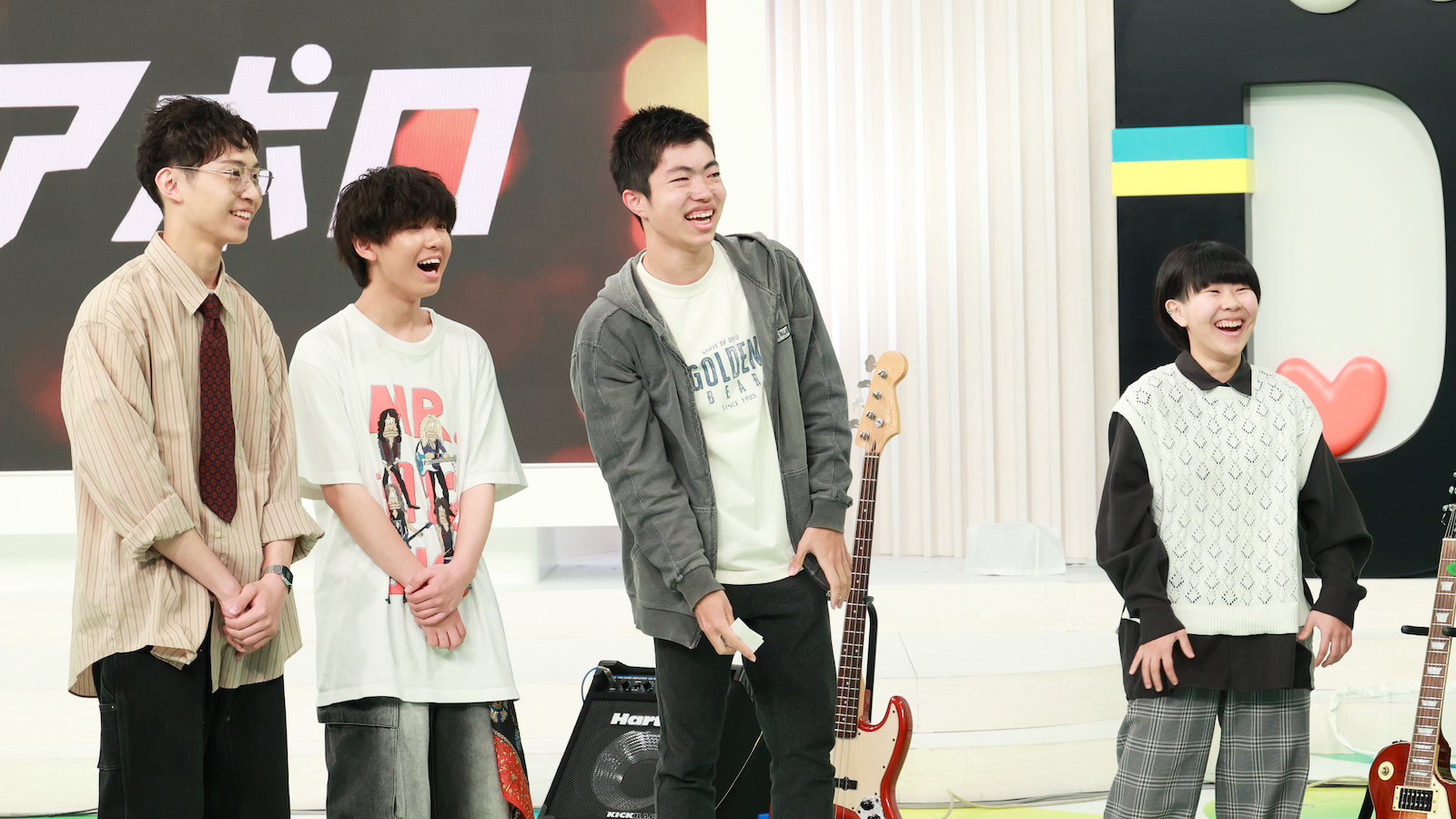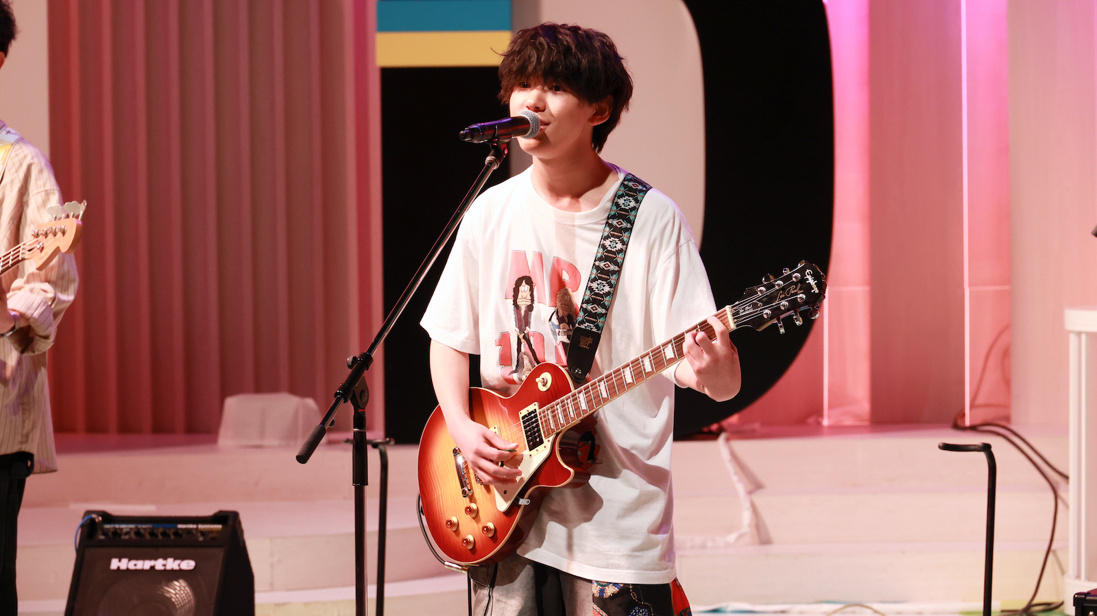たいよう(Vo.Gt.):テレビでの出演はすごく緊張しました。でも出演者の皆さんがすごくフレンドリーで、画面に映っていないところでもいっぱい交流してくれて、めちゃくちゃうれしかったです!でもいつもより緊張しなかったかも…