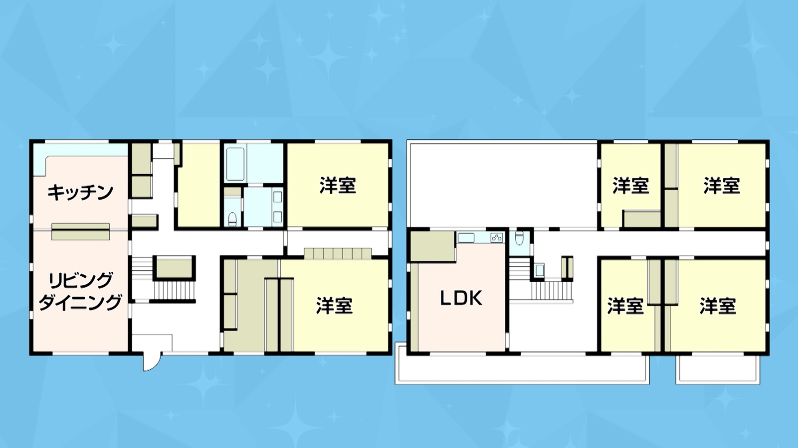 この家の間取りは、7LLDDKKの2階建てで、広さは地下を含めて約570平米。1階には上村さんの母、2階には上村さん家族が住んでいる二世帯住宅だ。