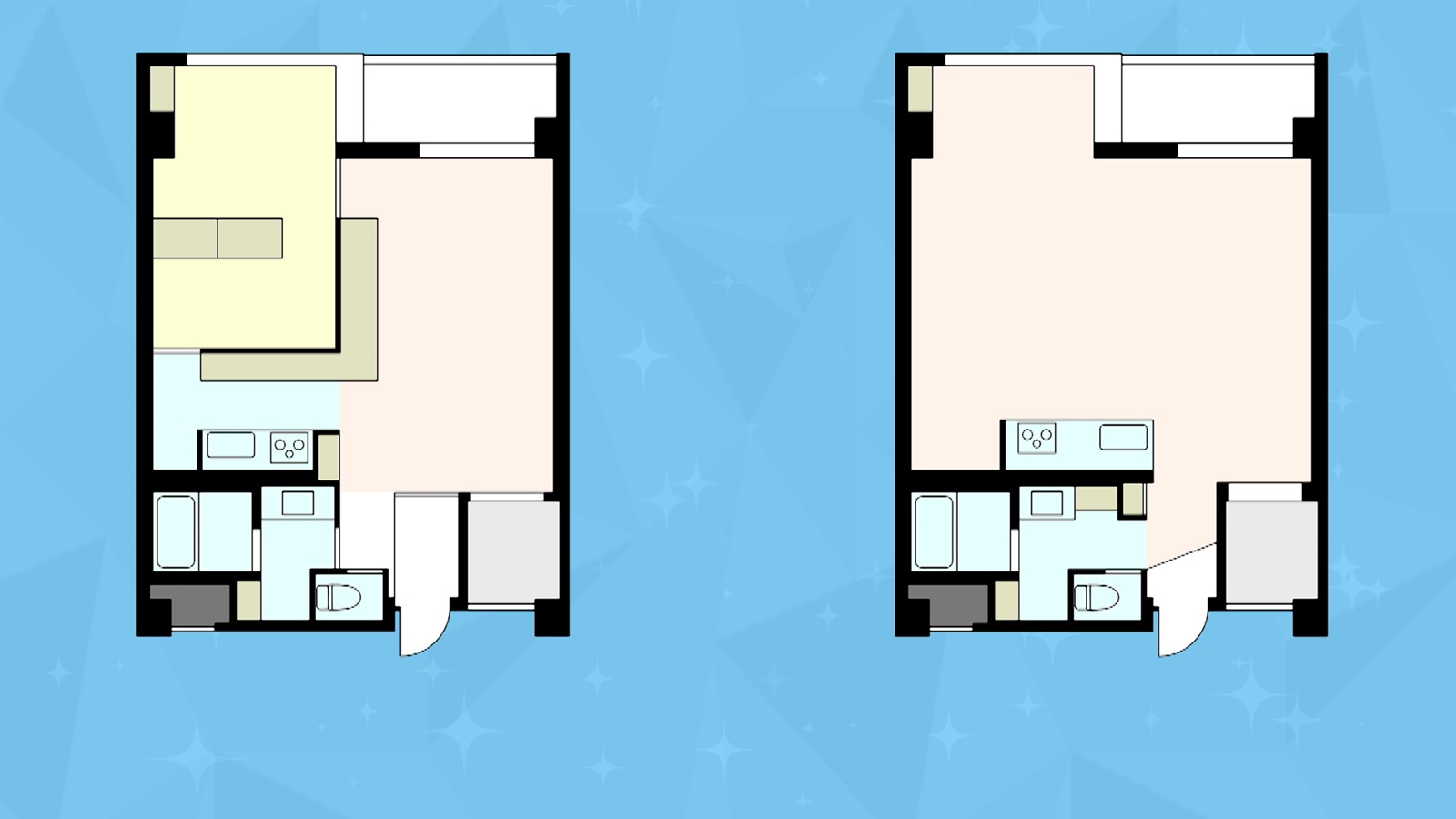 寧生さんは、もともと約53平米の1LDKだった部屋から壁を取り払い、広々とした1Rに作り替えた。寧生さんいわく、このリノベによって“新発想”の家ができたらしく、「私的には発明だと思っています」と自信たっぷりの様子だ。