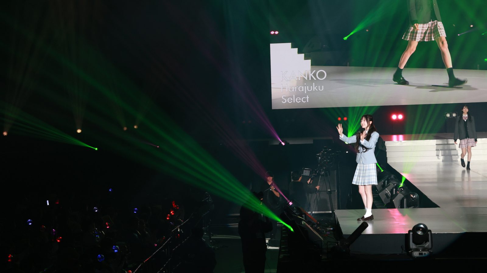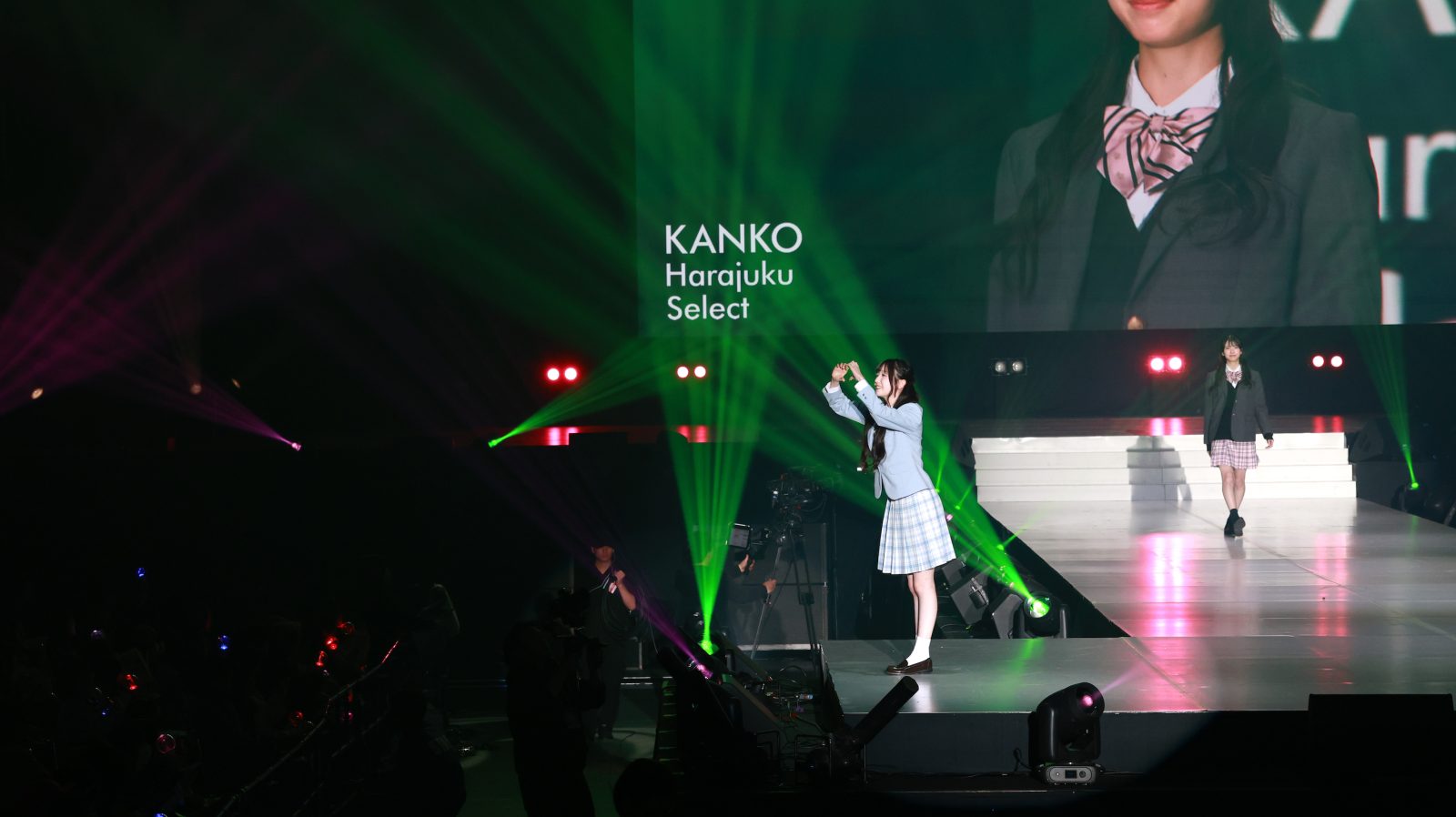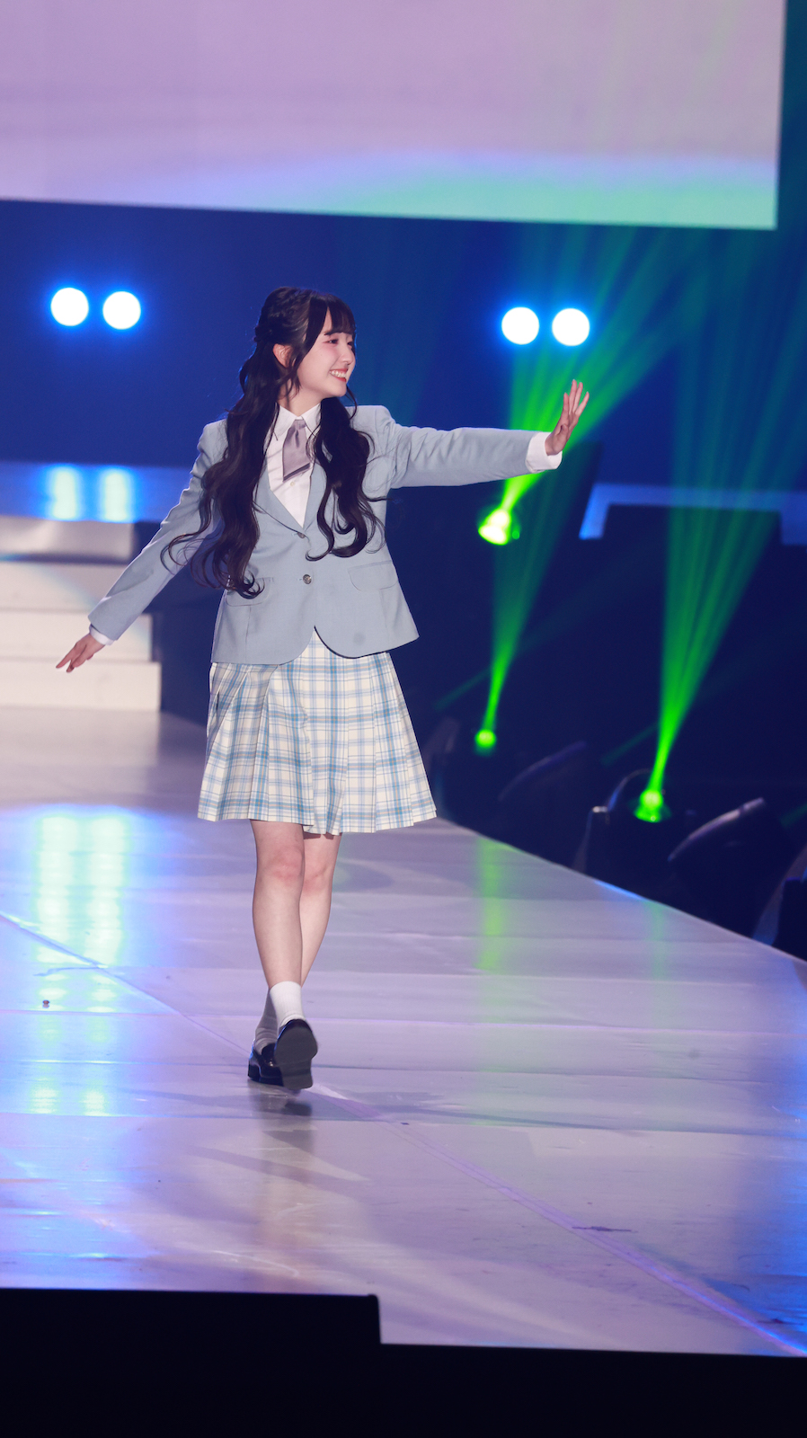 森斗咲羽が出演したのは、ファッションステージ「KANKO Harajuku Select」。トップバッターから続く華やかなランウェイの中、6番目のモデルとしてステージに登場。水色のジャケットにチェックのスカートを合わせた制服スタイルで登場し、爽やかさと“超十代”ならではの“青春っぽさ”を兼ね備えたコーディネートを披露。