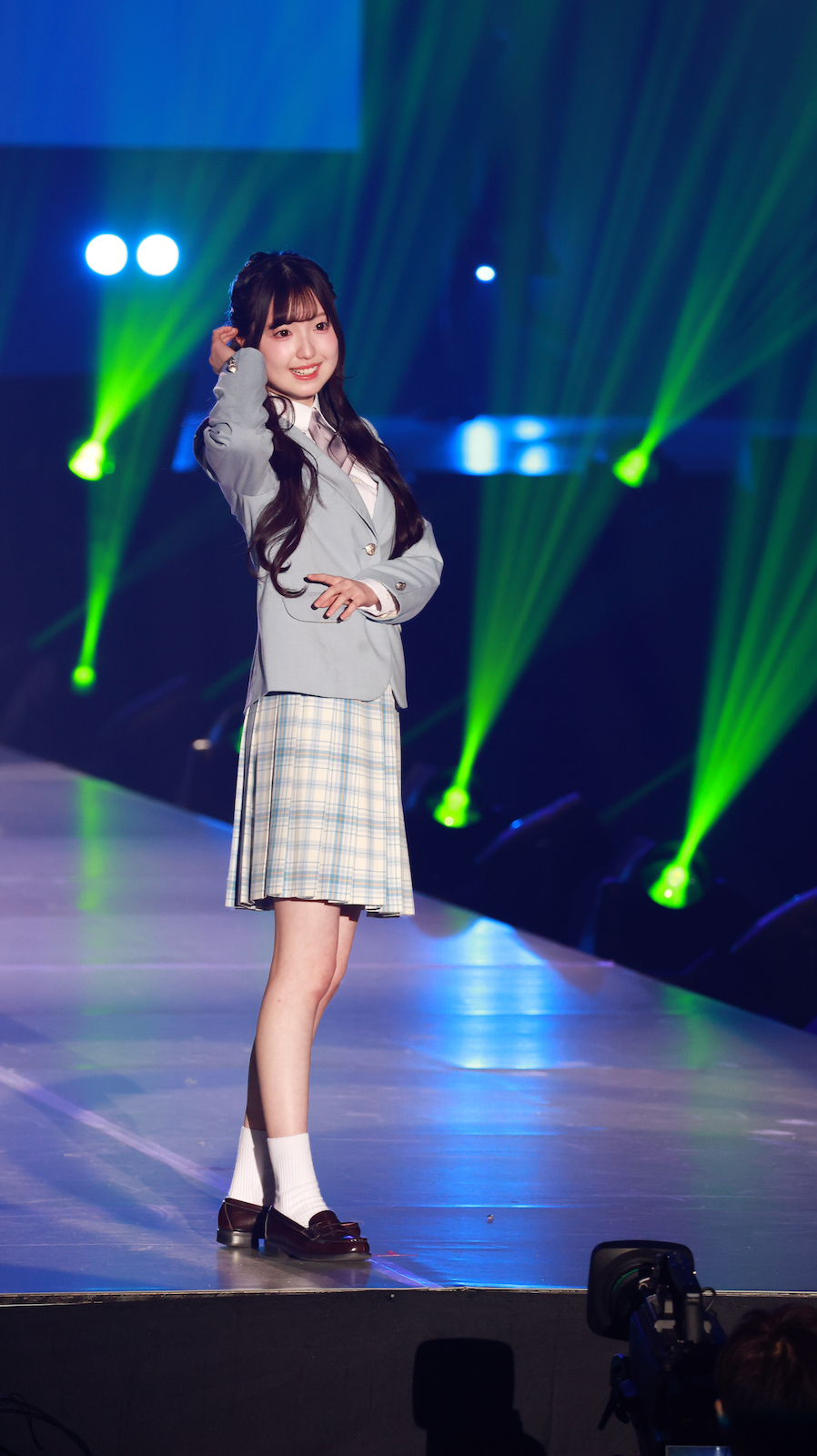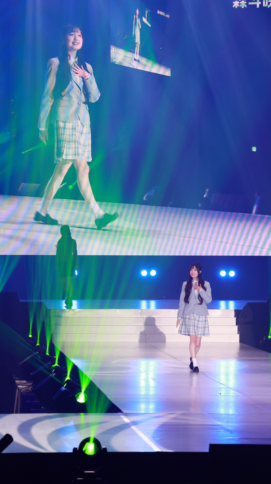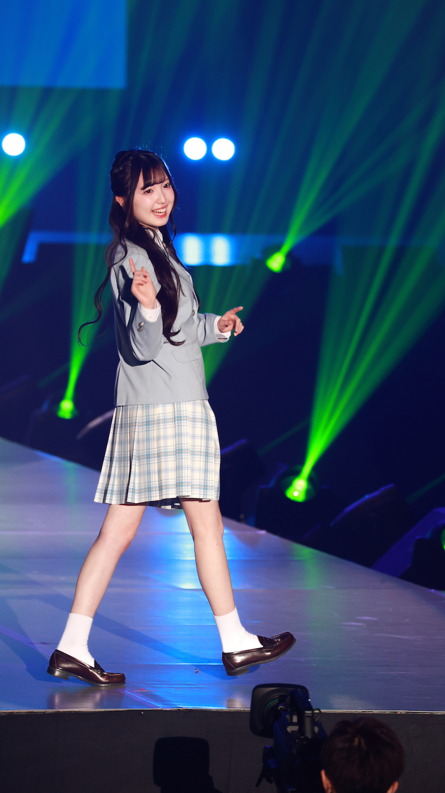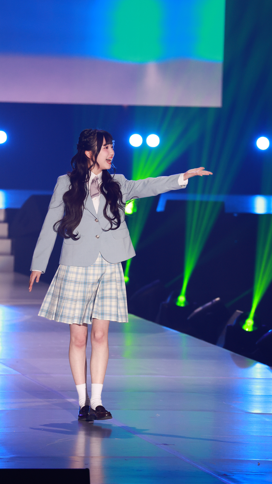 森斗咲羽が出演したのは、ファッションステージ「KANKO Harajuku Select」。トップバッターから続く華やかなランウェイの中、6番目のモデルとしてステージに登場。水色のジャケットにチェックのスカートを合わせた制服スタイルで登場し、爽やかさと“超十代”ならではの“青春っぽさ”を兼ね備えたコーディネートを披露。