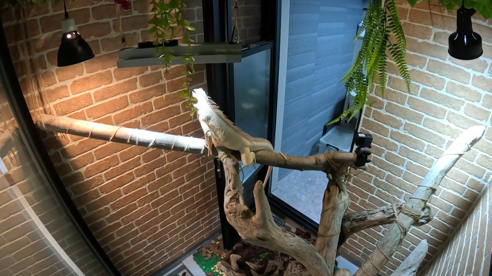 ゼロくんの専用部屋は、健康維持のための紫外線ライトや、年中室温を28℃に保つためのエアコンが完備されており、建築費は約100万円。リビングのガラス窓からも専用部屋の中を見ることができるため、「カッコいいトカゲなんで、しっかりレイアウト組んだら映えてくれる」と樹さんは満足そうな様子だ。