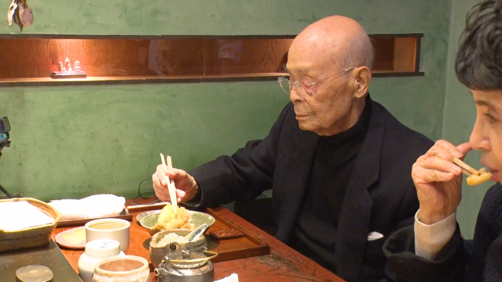 2か月に1回は来店するという二郎さん。「ほんとにおいしいから、私は他の店には行きませんから。ここしか天ぷら屋さんを知りません!」と語る二郎さん。この日二郎さんはエビにキス、白魚、アナゴなど天ぷら10品、さらに締めの天茶まで完食。「まだ100歳過ぎたばっかだから食べられますよ」と笑う二郎さんだった。