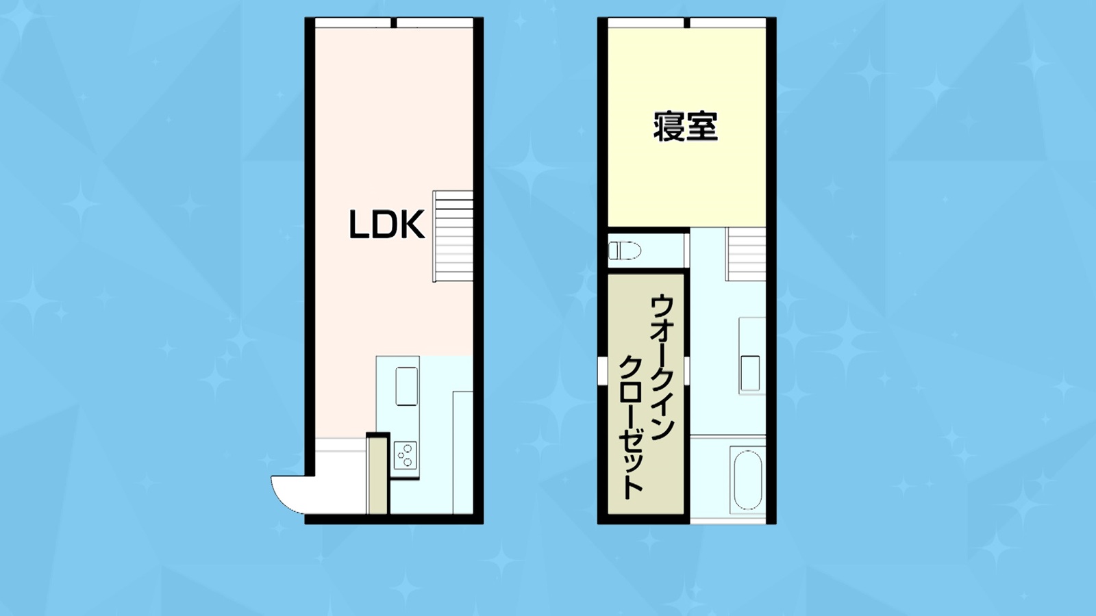 この家の間取りは、2階建て1LDKで、広さは80平米。LDKは15帖(じょう)で、2階には広いウォークインクローゼットもある。調査のため、さっそく2人は家の中へ。